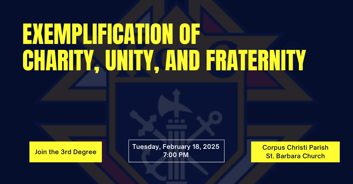 Corpus Christi Council 12043 will hold a combined Degree Ceremony on Tuesday, February 18th at: